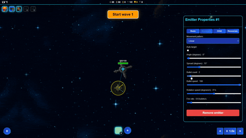 - New emitter option: auto target – automatic tower rotation towards enemies.